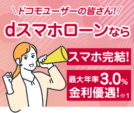 ドコモの回線やdカード、その他対象サービスの契約やご利用状況に応じて金利が最大年率3.0%優遇されます。※1